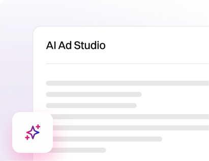 Generate a custom studio quality ad with AI Ad studio in minutes.